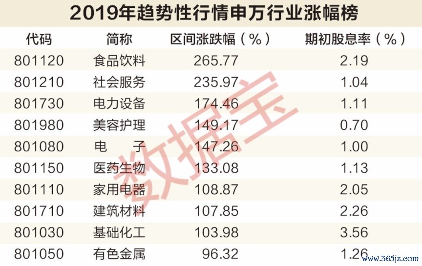 在2005年的行情中,有色金屬、煤炭、美容護(hù)理、石油石化等股息率居前的行業(yè)漲幅也居前,而今時(shí)今日最火爆的TMT板塊表現(xiàn)墊底;2008年的行情中,有色金屬、煤炭等高股息行業(yè)同樣漲幅居前,鋼鐵行業(yè)漲幅也位居前列;2013年的行情中,則有紡織服飾、交通運(yùn)輸?shù)雀吖上⑿袠I(yè)漲幅居前;2019年食品飲料和基礎(chǔ)化工等繼續(xù)走強(qiáng)。